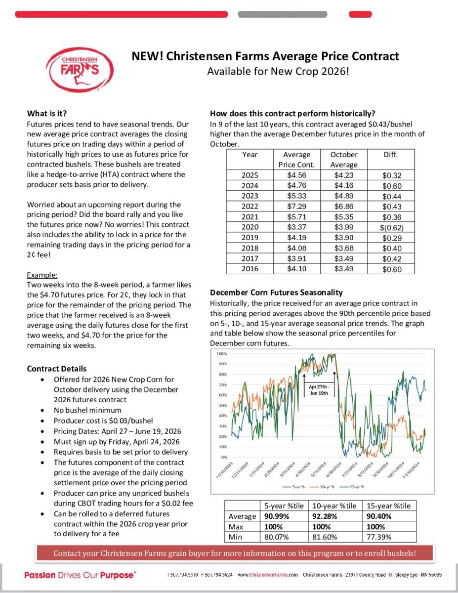 - Corn must be of sufficient quality to be purchased by Christensen Farms